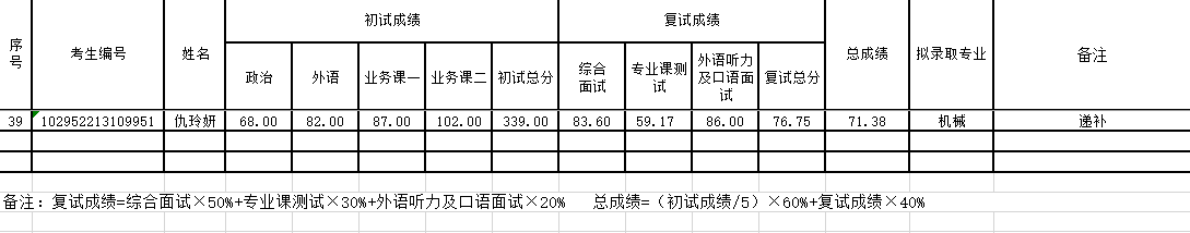 按我校研究生招生录取管理办法,在机械专业调剂复试名单中进行递补录取。