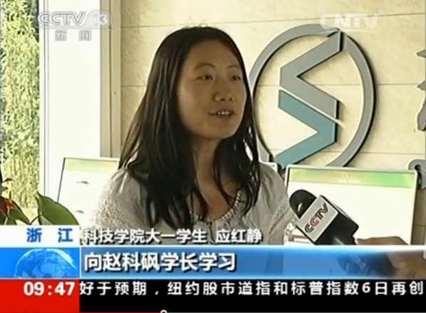 6月7日央视新闻频道报道“浙江省大学生征兵宣传工作”,我校校友赵科砜作为大学生军官先进典型出现在新闻报道中(图一),我校的大学生征兵宣传工作得到关注,信息学院大一女生应红静同学在新闻中接受采访(图二)。