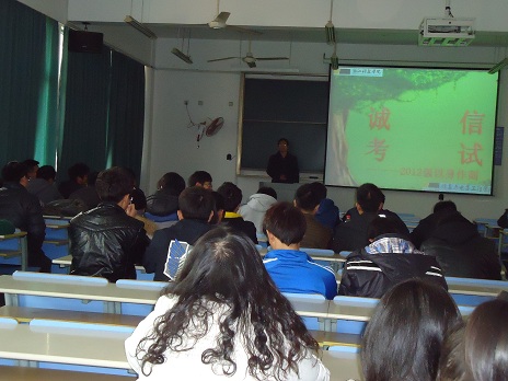 的相关规章及要求,信息学院2012级及2013级的试点班级专门为此开展了主题班会,重点强调了考试的纪