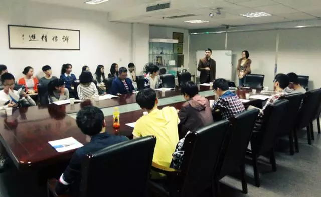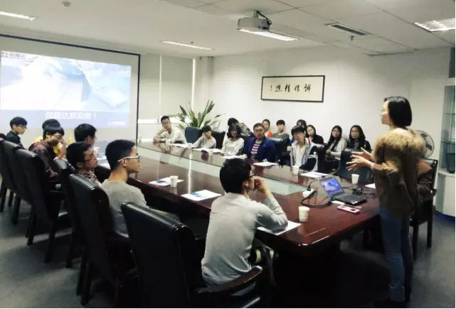 孙经理为同学们介绍企业的发展历程。