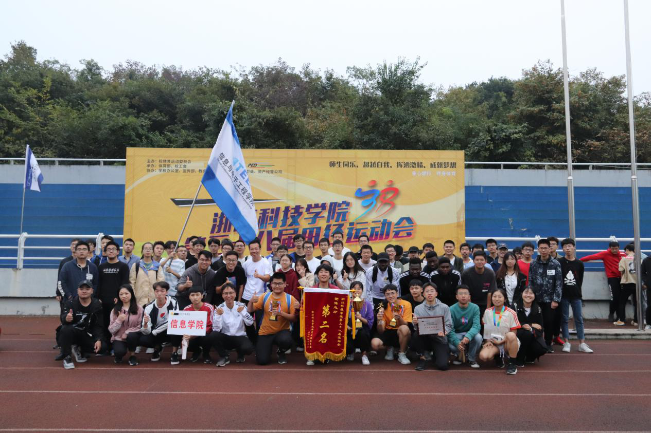 浙江科技学院第38届运动会在10月24日正式拉开了序幕。在两天的紧张赛程里,信息健儿奋勇拼搏。本次运动会信息学院荣获入场式创新奖,男子组团体第二,女子组团体第三,团体总分第二名的好成绩。