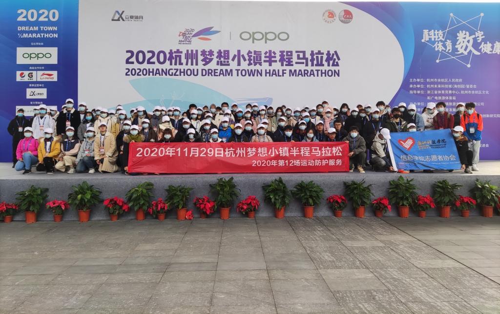 为贯彻落实党的十九届五中全会精神,促进素质教育在大学中的展开,进一步发挥志愿服务文化在塑造美好心灵、凝聚人心,促进社会团结、传递社会主义核心价值观方面的作用,11月29日,浙江科技学院学院信息学院志愿者协会应梦想小镇马拉松组委会邀请,组织了一支由120名志愿者组成的队伍参加余杭区政府主办的杭州梦想小镇半程马拉松志愿服务活动。“以梦为马,不负韶华”,浙科学子展示青春风采,彰显青春正能量。